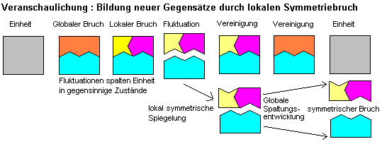 Dimensionen symmetrisch entstehen und verschwinden.